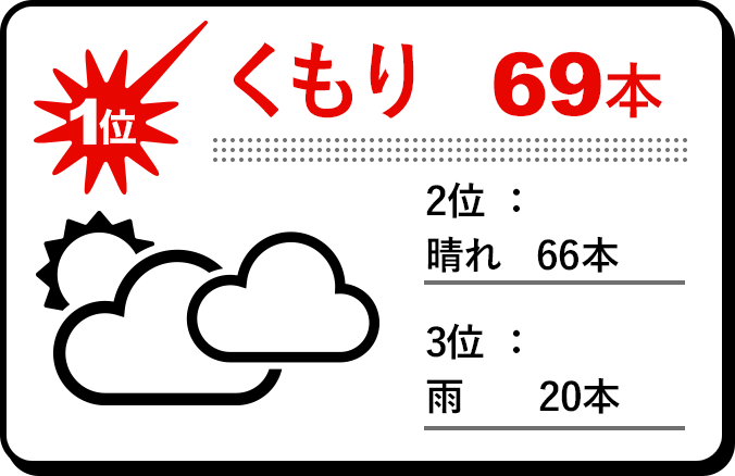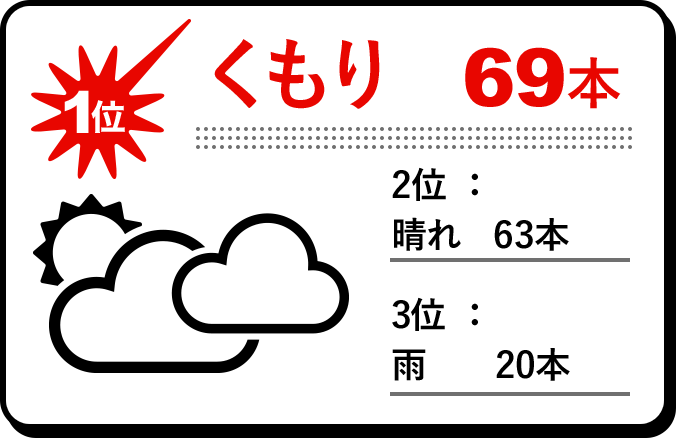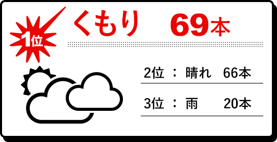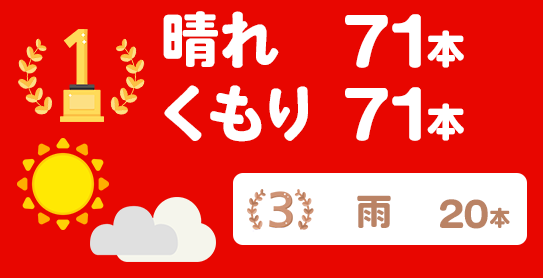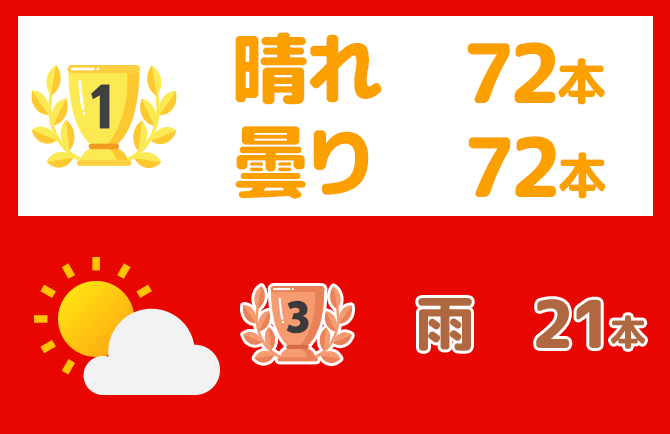 インターネット購入を除いた本数分を集計。購入年月日、時間帯で気象庁データベースから当該地方の天気を検索しています。