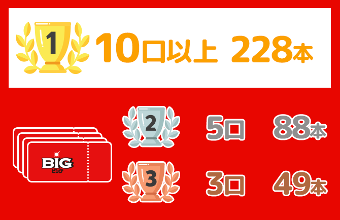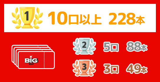 2006年9月~2024年12月のBIG(6億円)1等当せん445本のうち、2024年12月時点で当せん金受取済みの442本を対象に集計しております。