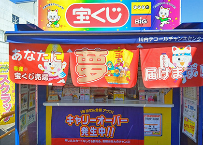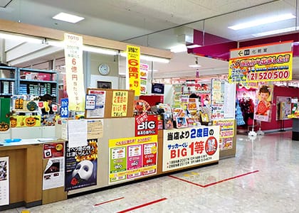 当店は地方都市にあり、行列の絶えないようなメジャー売場ではありませんが、幸運を運ぶと言われている西向きの売場であることや、お客様に当たりますようにと定期的な神社参拝を行うなど、お客様の運気向上を常にこころがけて販売しております。お近くにお越しの際はぜひお立ち寄りください。今回よりシーズン終了後Jリーグ中断期間も海外サッカーを対象にしたBIGがスタートし、年間を通してお楽しみいただけるようになりました。これを機会にスポーツ振興くじがますます盛んになりますようご愛顧をお願いいたします。