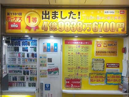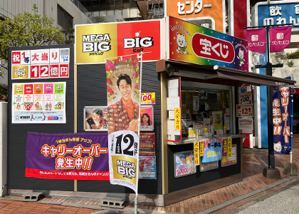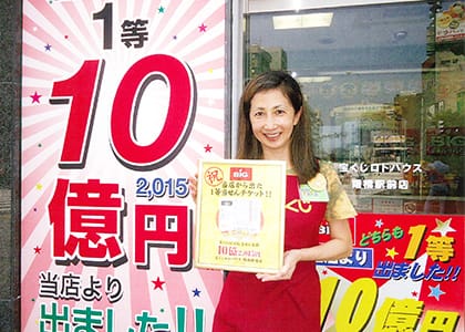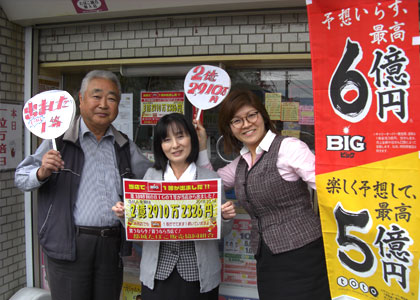 売場開店以来10年目で念願のBIG1等10億2015円が当「宝くじロトハウス曙橋駅前店」