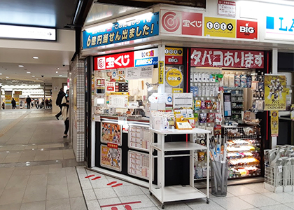 多くの路線が交錯する首都圏有数のターミナル駅、横浜。多方面からの来客で賑わう駅の西口「ジョイナス地下街」で、古くからある名物売り場が、ここ「横浜ダイヤモンドチャンスセンター」です。
