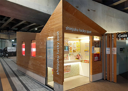 乗降客数世界1位の新宿駅南口を出て、全国へ人が行き交う日本最大の高速バスターミナル「バスタ」側のNEWoMan1階に、2018年10月、幸運を呼び込むラッキースポットでありたいとの思いを込めて、その名の通り「新宿ラッキースポット」はオープンしました。