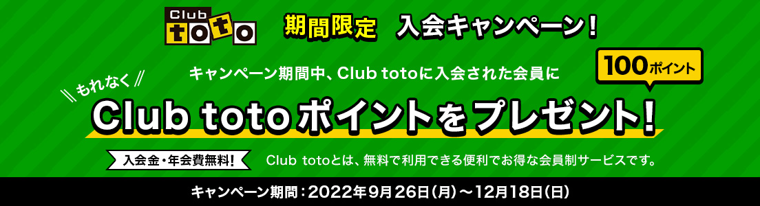 2022年9月26日(月)~12月18日(日)の間にClub totoの入会を完了された方