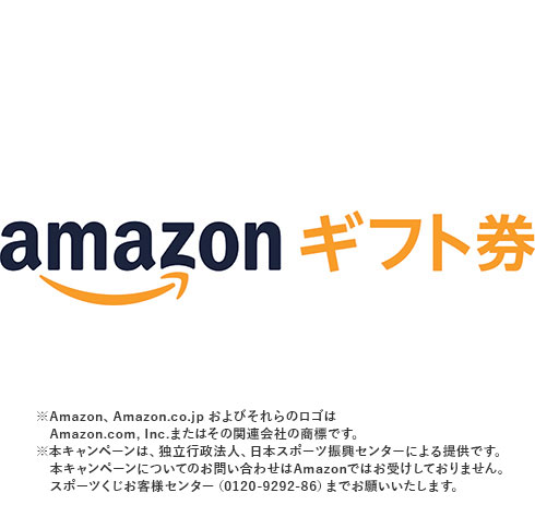 - Amazon ギフト券(Eメールでお届け)はパソコン・携帯ともにご登録のある場合、パソコン用メールアドレスへお送りいたします。また、「campaign@cp.toto-dream.com 」から送信いたしますので、ドメイン指定受信などを行っている方は、「cp.toto-dream.com 」ドメインからのメールを受信可能な状態に設定変更をお願いします。