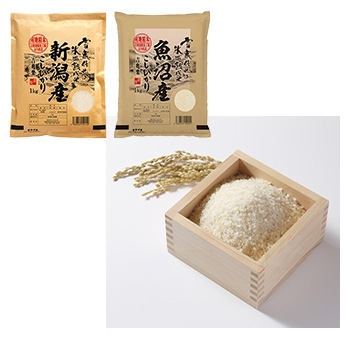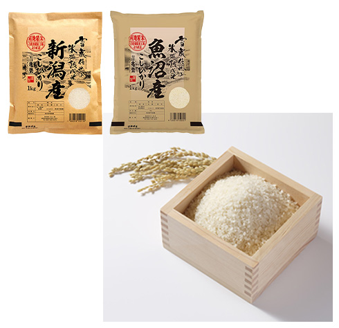 魚沼産・新潟産コシヒカリのセット。雪蔵保管し鮮度を保持してさらに氷温熟成で美味しさを引き出しました。
