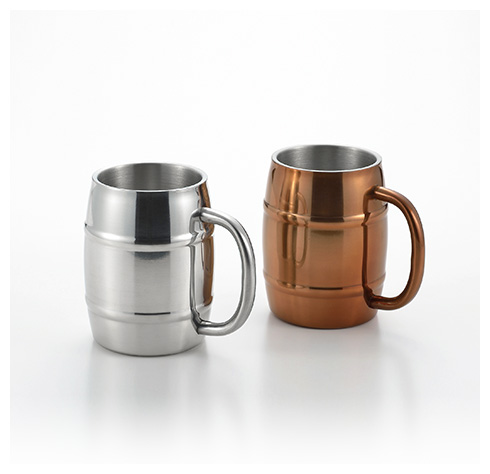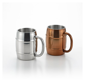 遊び心のあるステンレス製樽型マグ。本体は二重構造のため、冷たさや温かさが長続きする優れもの。