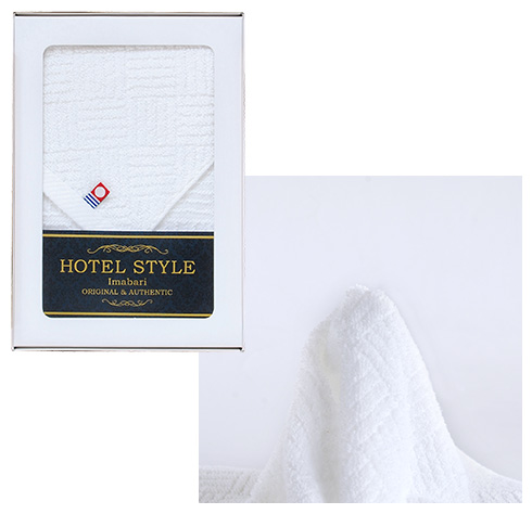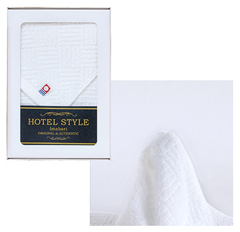 今治産のフェイスタオル。しっかりとした織りの使い勝手の良いタオルで、お風呂上がりやヘアードライが快適に。