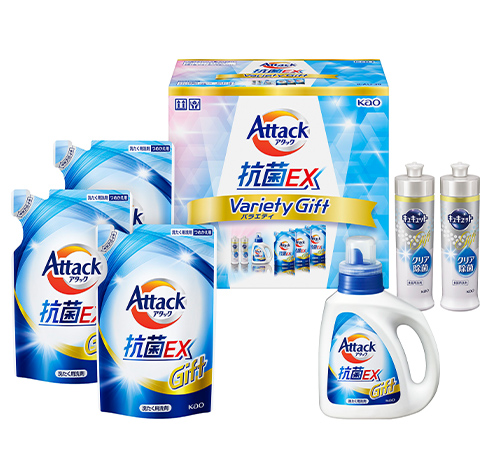 抗菌効果のある液体のアタックとキュキュットが入ったセットです。