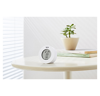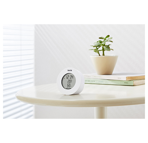 インテリアに馴染む小型の温湿度計。過去の最高・最低温湿度表示機能や3段階での快適度表示機能付き。