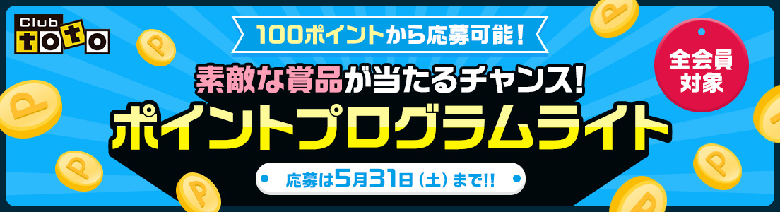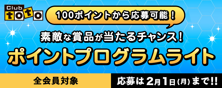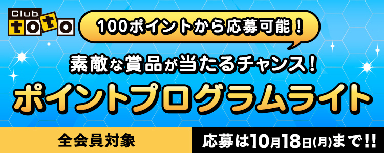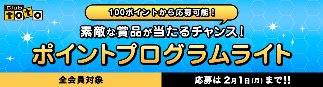 Club totoにログイン後、会員メニューの「ポイントプログラム」よりご応募ください。