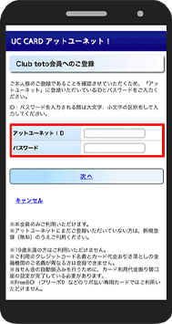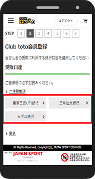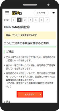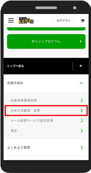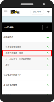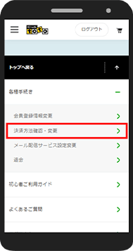 Club totoにログインし、「決済方法確認・変更」をタップ。