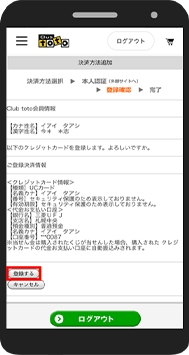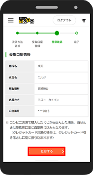登録する口座情報を確認し、「登録する」ボタンをクリックして登録完了。