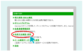 Club totoにログインし、「決済方法確認・変更」をクリック。