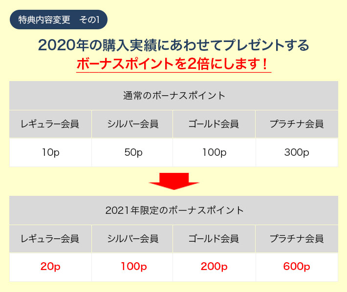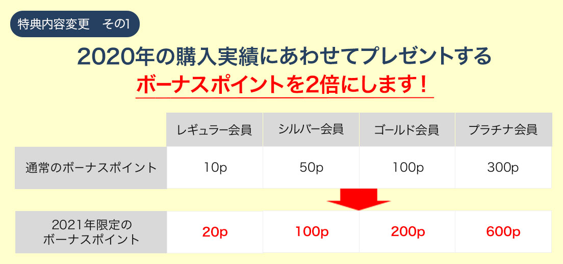 | ①ボーナスポイントプレゼント (毎年1月に付与を予定) |