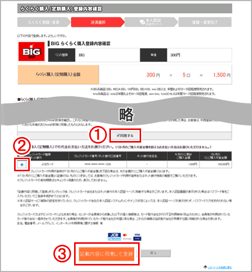 - 「記載内容に同意して登録」ボタンクリック後、クレジットカード会社またはネット銀行の本人認証ページに移動する場合があります。その画面でパスワード等を入力いただいてご登録手続き終了となります。