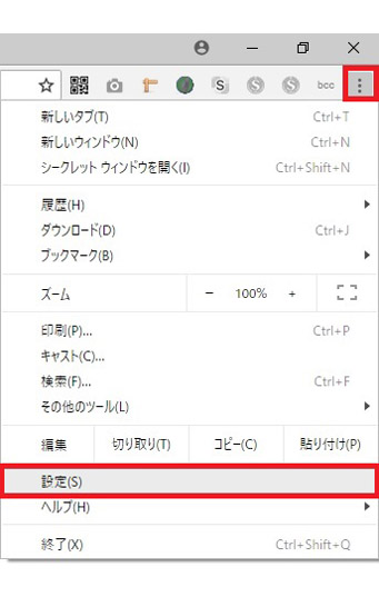 - 「メニュー(縦に3つの点)」をクリックし、「設定」をクリックします。