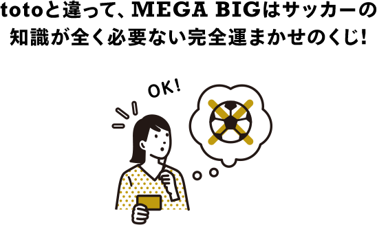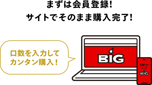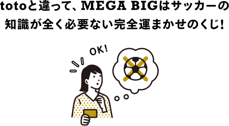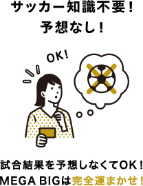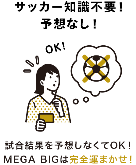 「BIG」も「MEGA BIG」も予想不要のスポーツくじ。「BIG」の当せん金額は1等最高6億円。