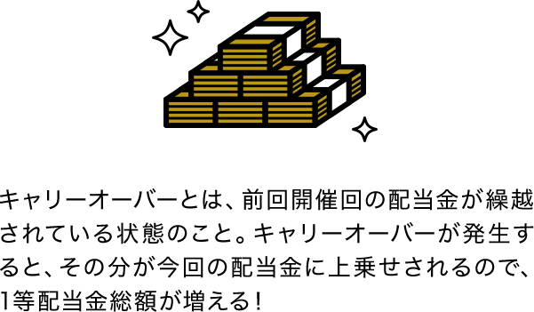 キャリーオーバーがない場合は、最高7億円。当せん金は、売上金額や当せん口数によって変動します。