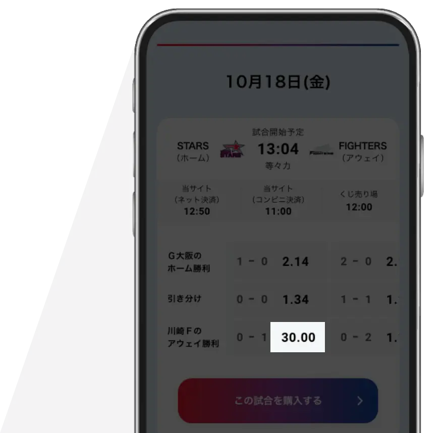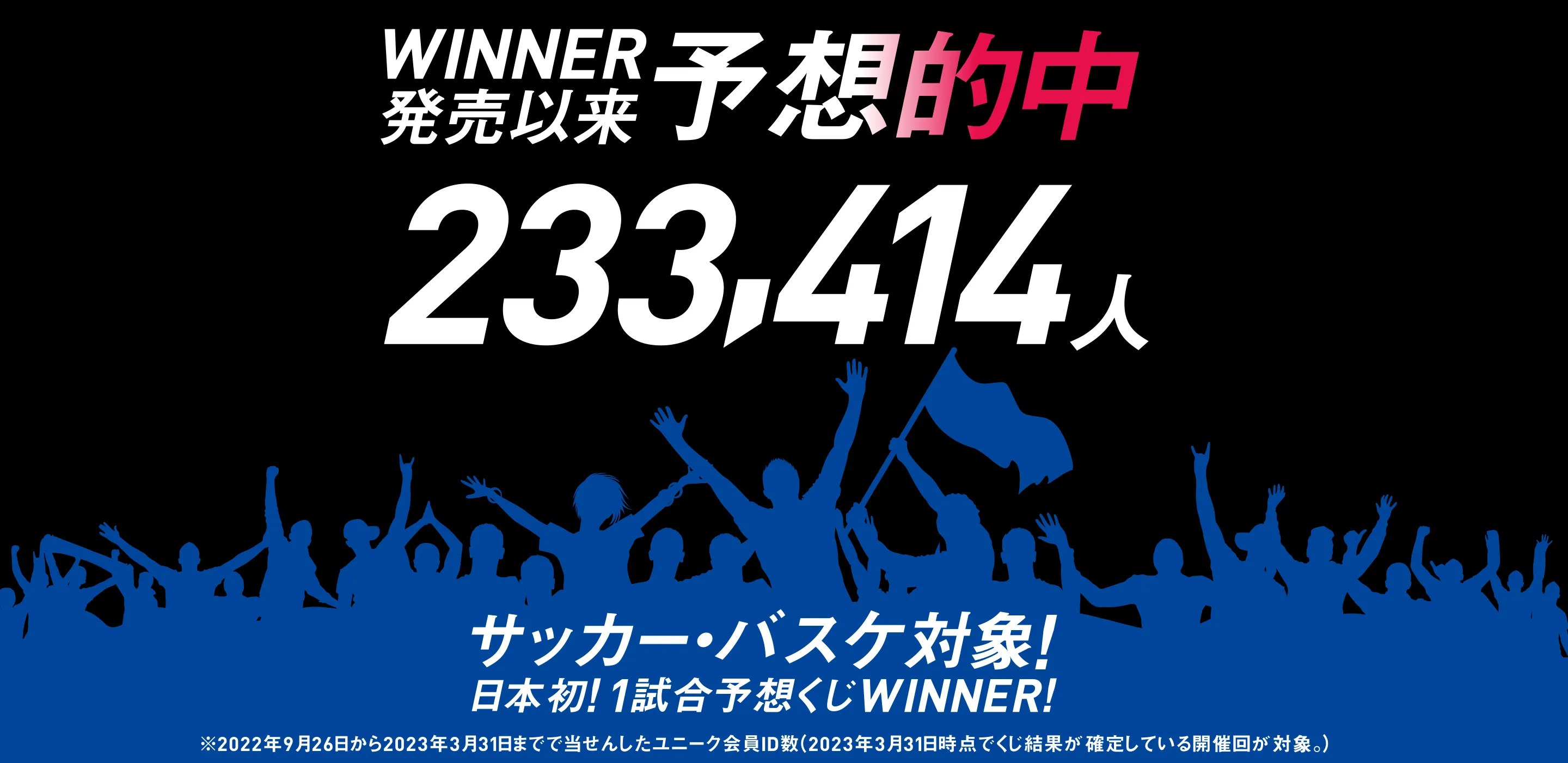試合結果を自分で予想するのはtotoと同じですが、1試合の予想から楽しめるのはWINNERだけ。結果を予想しながら試合を応援して、もっと盛り上がろう! -