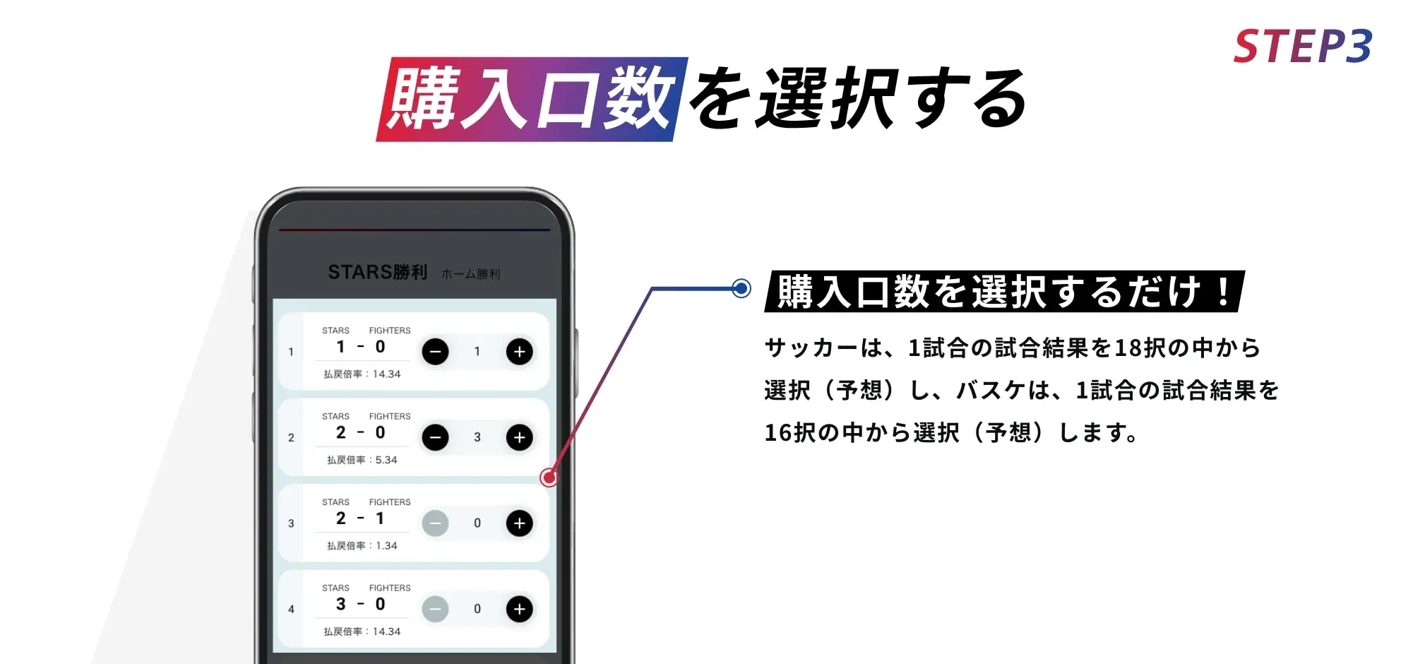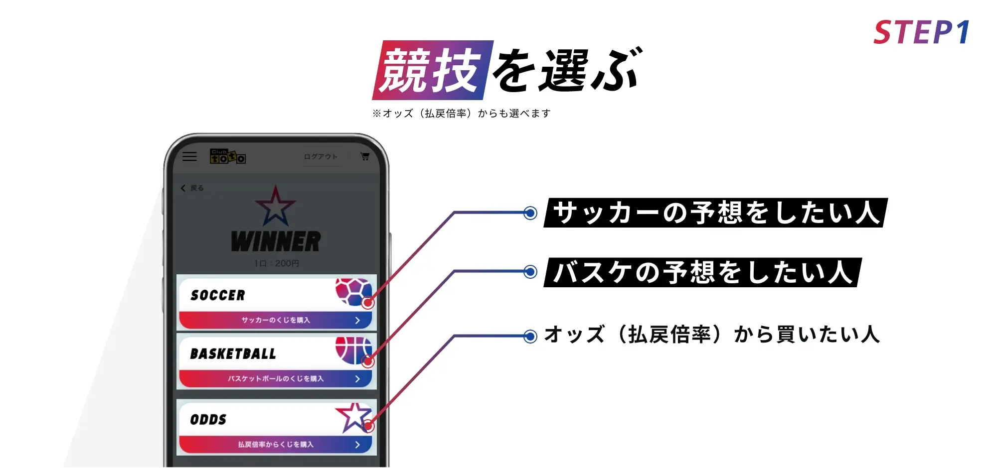試合結果を自分で予想するのはtotoと同じですが、1試合の予想から楽しめるのはWINNERだけ。結果を予想しながら試合を応援して、もっと盛り上がろう! -