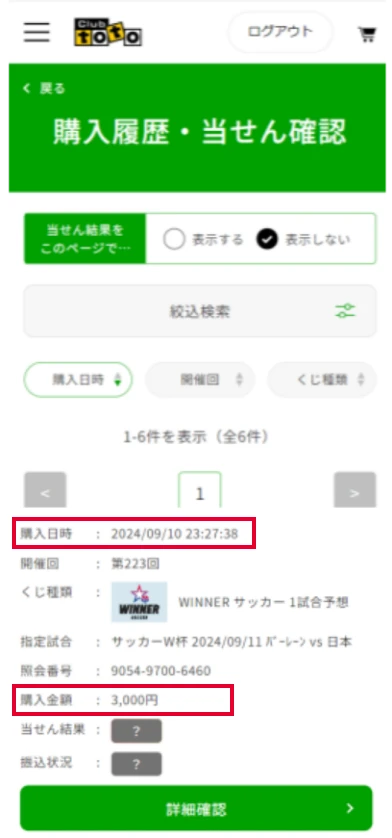 スポーツくじ公式サイト(ネット決済・コンビニ決済)または提携サイトでご購入された場合は「各サイトの購入履歴画面のスクリーンショット画像」を、くじ売り場でご購入された場合は「スポーツくじ券面の写真」をアップロードいただき、ご応募ください。