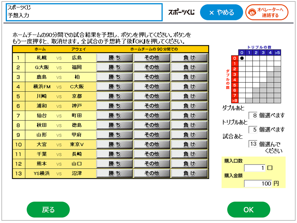 マルチコピー機の画面で「スポーツくじ」をタッチ!