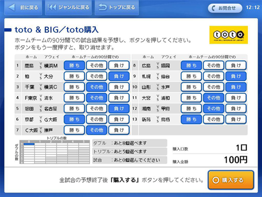 「toto購入」を選んでタッチ!
