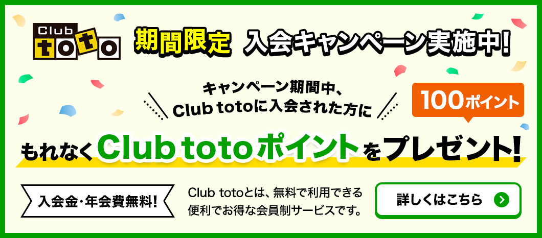 はじめての方へ BIGはサッカーの知識が必要ない、完全運まかせのくじ!口数を決めて購入したら、あとは当せん結果を待つだけ。次の億万長者はあなたかも!? Club totoの入会はこちら!