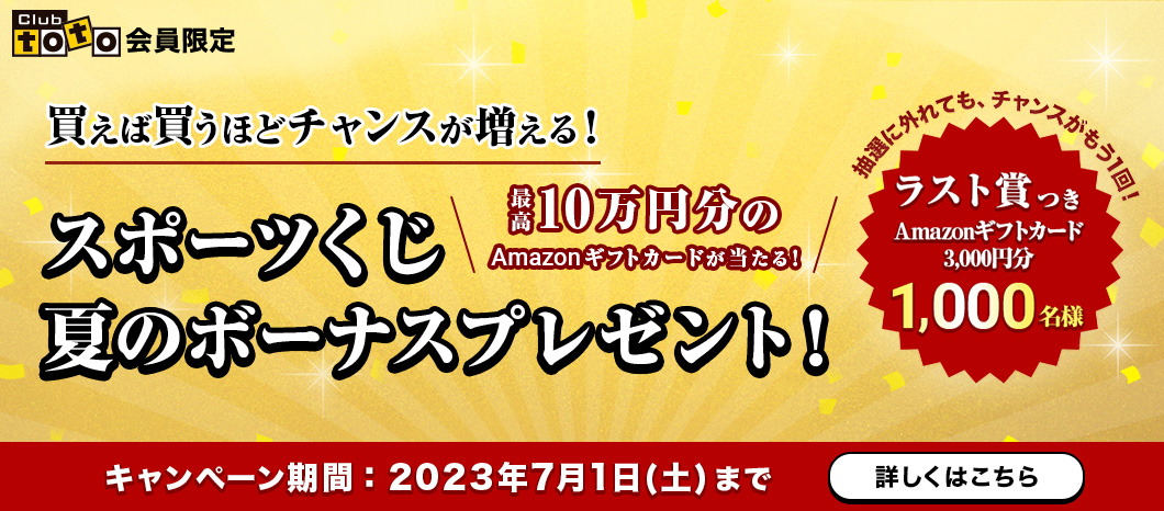 トップページ[totoONE] 予想コラム、予想支援ツール、対戦データなど、予想に役立つ情報満載のポータルサイト「totoONE」へ トップページ[totoONE] 予想コラム、予想支援ツール、対戦データなど、予想に役立つ情報満載のポータルサイト「totoONE」へ 詳細データ[totoONE] 過去の対戦成績や投票率、時間帯別得失点、チーム情報など、予想の参考になる詳細データを大公開 詳細データ[totoONE] 過去の対戦成績や投票率、時間帯別得失点、チーム情報など、予想の参考になる詳細データを大公開 予想陣コラム[totoONE] 予想サイト「totoONE」ならではの情報量をもとに、様々な切り口から大胆予想を展開するコラム 予想陣コラム[totoONE] 予想サイト「totoONE」ならではの情報量をもとに、様々な切り口から大胆予想を展開するコラム