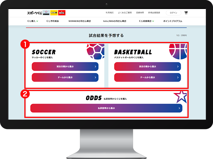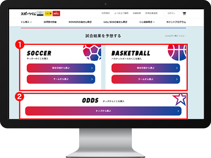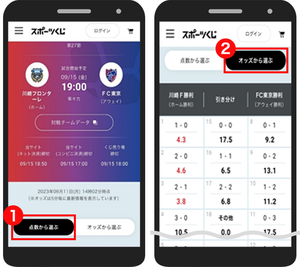 選択肢は①「点数」または②「オッズ(払戻倍率)」からお選びいただけます。