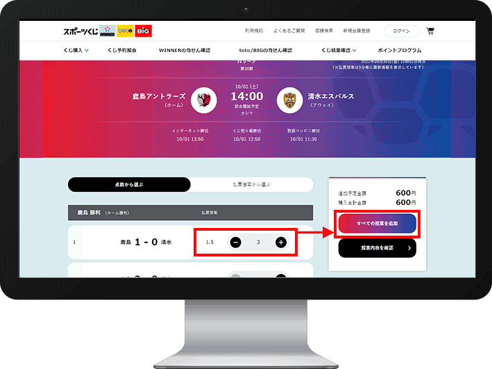 選択肢が決まったら、口数を入力して「選択した投票を追加」をクリックし、購入手続きへと進んでください。