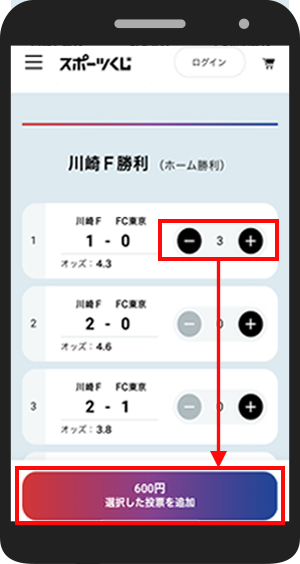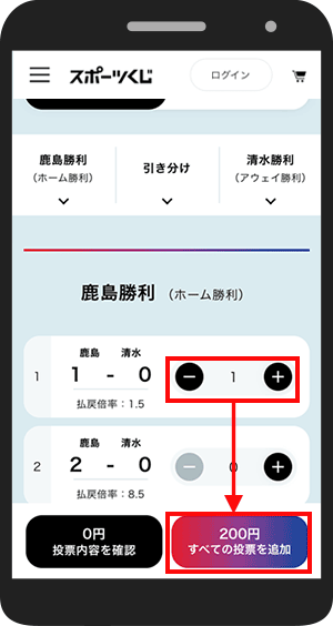 選択肢が決まったら、口数を入力して「選択した投票を追加」をタップし、購入手続きへと進んでください。