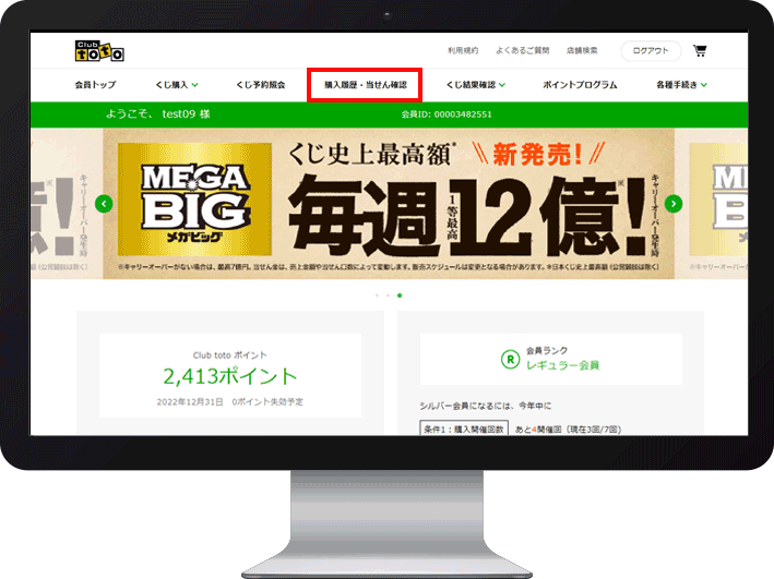 Club totoにログイン後の「購入履歴一覧」ページにてご確認いただけます。