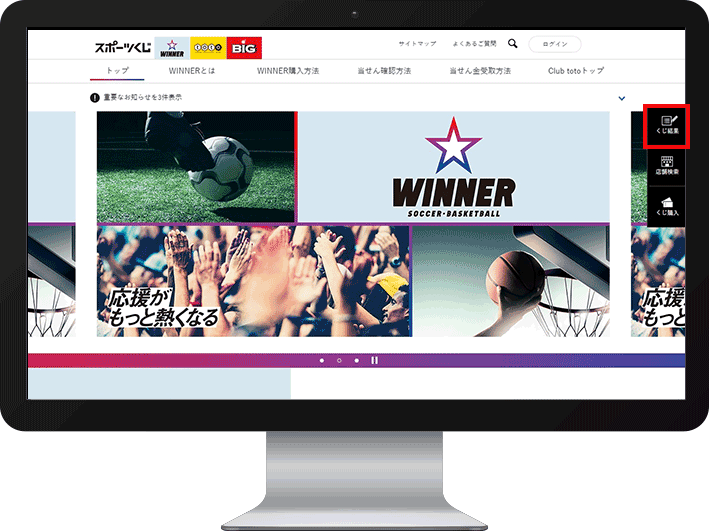 楽天銀行totoサイト、PayPay銀行スポーツくじサイト、Yahoo! totoサイト、楽天totoサイト、三井住友銀行サイト、au PAY totoサイト、住信SBIネット銀行スポーツくじサイト、じぶん銀行totoサイト、ドコモスポーツくじサイトで購入された方は各サイトでご確認ください。